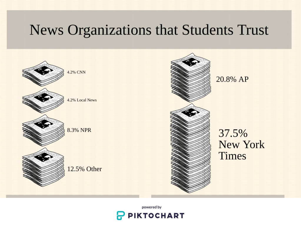 “Most people don’t spend that much time with news today when compared to 10 years ago. They [students] are spending more time on social media, so the news comes to them rather than them going to the news,” said Clark when explaining why students don’t go to the sources they say they trust for news.