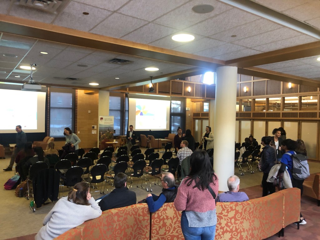 The audience gathers for a lecture by Julie Sarama. [Photo by Devon Weigers]